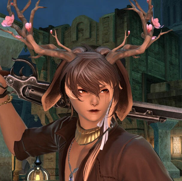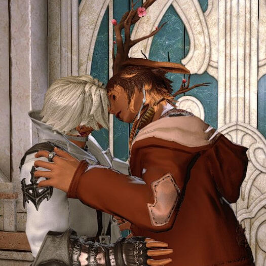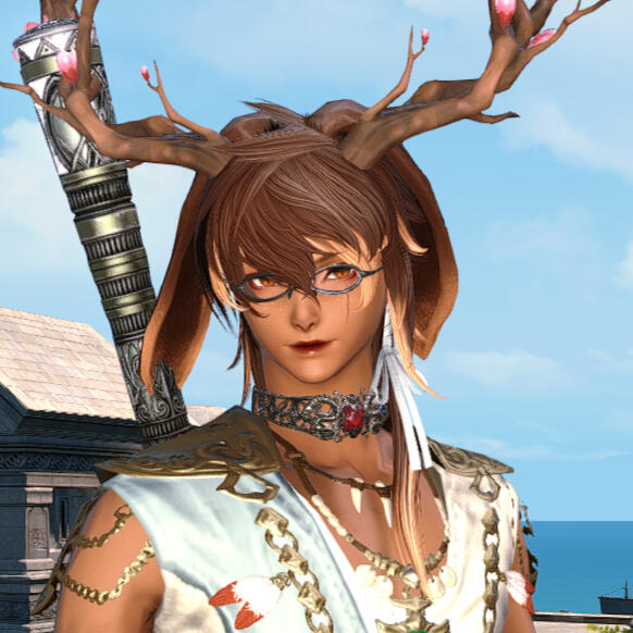 Tiramisu is a bit unusual among his kind.He was born in Sharlayan. He has lop ears, which isn't unusual in and of itself... but the antlers are anything but common. Because of this, he has been the subject of much study since he was young. His parents are well-respected Viera scientists who only encouraged the study of their son, much to his dismay.Though he felt out of place and struggled, he eventually went on to become a successful student at the Academy. He received two Archon distinctions— one for sage somanoutic arts and the other for wilderness survival. The more time he spent in nature embracing his odd heritage and antlers, the more he resented being trapped in his current life as an unwilling test subject.Tiramisu cut ties with his parents, leaving Sharlayan to join the Scions. Eventually, people came to call him the Sage of Light.For a brief period of time, he and Thancred were intimate, but they grew apart during their stint on the First. Thancred had changed in the five years he had spent there. They patched things up after their return back to the Source, but Tiramisu remained hesitant to re-enter a romantic relationship with Thancred.After the events in Ultima Thule, Tiramisu sought the gunbreaker out again, deciding it was important to act on his feelings as tomorrow is never guaranteed.