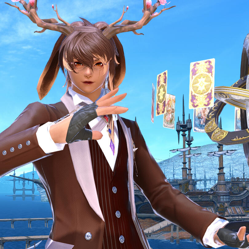 Though he has long been dedicated to the sage somanoutic arts, he picked up learning astrologian healing arts while in Ishgard. As it turns out, he has little talent for it, but he is good at card tricks!He can sometimes be seen doing card tricks in Hawker's Alley in Limsa.